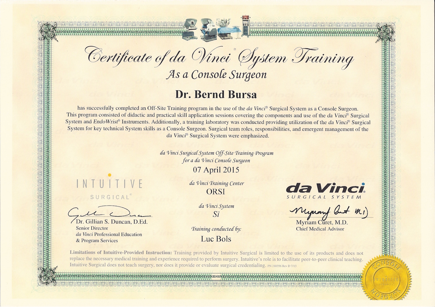 - Zertifizierung zum „Da Vinci“-Operationssystem (Minimal-invasive, robotergestützte Chirurgie)